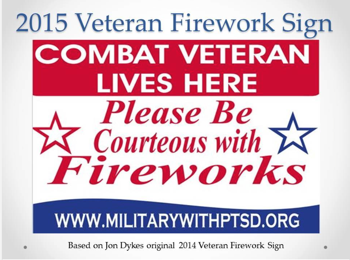 Today I wanted to talk about an issue I was hesitant to discuss on July 4th: fireworks. While there is no such thing as a typical veteran and his or her response to fireworks, my feelings about July 4th encompass a greater stress. My friend, Bart Carroll, and one-time high school boyfriend, was murdered on this day back in 2002. I gathered that day with many who knew him to watch fireworks. To me, it was a way to honor his memory. For many years, I’ve enjoyed watching fireworks to continue this tradition, but I’ve enjoyed this privilege with some set off distance from most fireworks displays. I lived in places where individuals could not shoot off fireworks in their neighborhood or it was not popular in the community to do so. As well, when we lived in Cody, Wyoming, our back alley provided an unimpeded view of the city’s fireworks display so I never watched fireworks close up there.