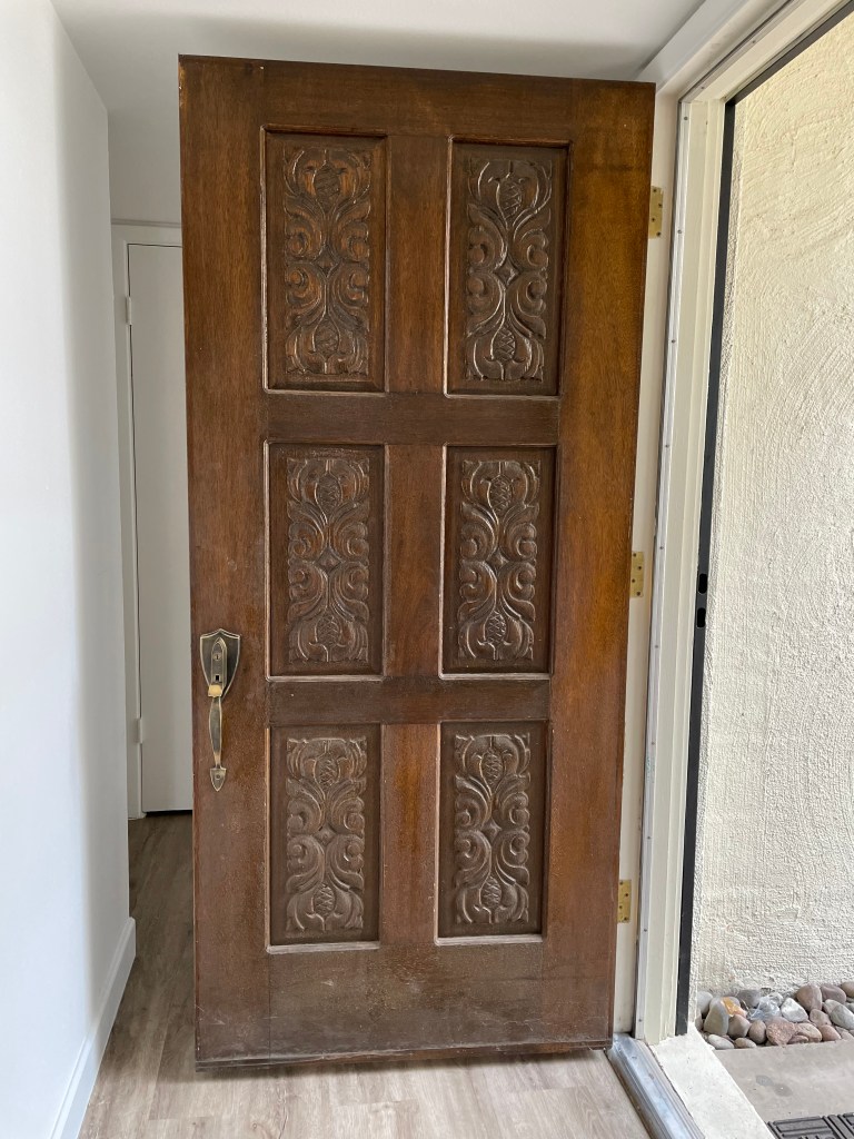 In trying to find where I belong, I also have to confront what is not meant for me. (Isn’t that one of the hardest things to accept?!). Earlier this year, we started to explore moving to a different part of the Phoenix Valley. Our current home has appreciated in value quite well due to the pandemic housing uptick and the modifications we’ve made to it since occupying the house. We educated ourselves about listing offerings through Zillow and ones curated from a custom listing search with our realtor. A 1950’s home was high on our interest list but we were never able to visit it since the family handling the estate didn’t respond in time to our request for a showing. We saw large properties (think 13,000 square feet…which is good for us here), but both of those older homes were less appealing on the inside due to lack of proper came from the homeowners. Nothing dire, but there would be some serious elbow grease involved and a questioning as to when things like the roof, water heater, and HVAC might be in need of replacing. One of my favorites, although it had a quirky layout, was a home in Tempe, Arizona. This is the front door to that place. It is more a patio home. We could have lived with the quirky layout, but it had an incredibly low fence, about 4-5 ft high. The lack of privacy and risk our dog (or future dog) would get out made it a no go.