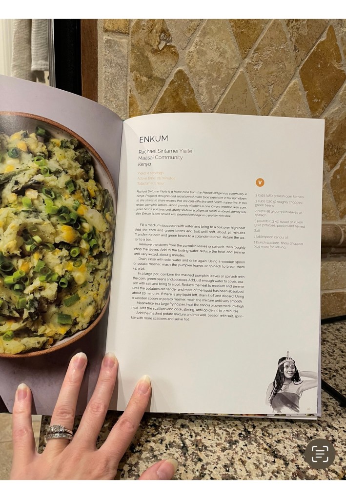 Our main side dish is the enkum recipe below. I found this recipe a few months ago in The Cookbook in Support of the United Nations: For People and Planet I borrowed from a public library. In the past few years, I’ve come across a number of articles on making Thanksgiving dinner less beige (think white dinner rolls, gravy, turkey, stuffing) and boring. I love how this is a nutrient dense potato dish and the vibrant colors will make for a beautiful contrast to the lamb entree. I will still keep some “traditional” beige on the plate with the stuffing although this year I found a stuffing mix made from Hawaiian bread that caught my eye.