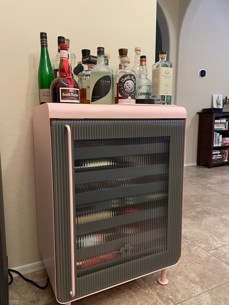 I will admit, like a lot of writers, I also like a glass of something special while I write. Don’t judge! We had the option of purchasing a larger, less expensive wine fridge, but we went with a smaller, retro look Rocco fridge instead. We like the space on top for the bigger bottles and the different zones within allow us to balance the needs of wine, beer and non-alcoholic beer, and a few bottles of spirits. This won’t necessarily be a good fit for those concerned about kids getting into alcohol. We don’t have any little ones running around (save for a high drive Belgian Malinois). Our teenager is also incredibly responsible, and unless we notice a change in her behavior, we trust that we can leave our alcohol setup as is.