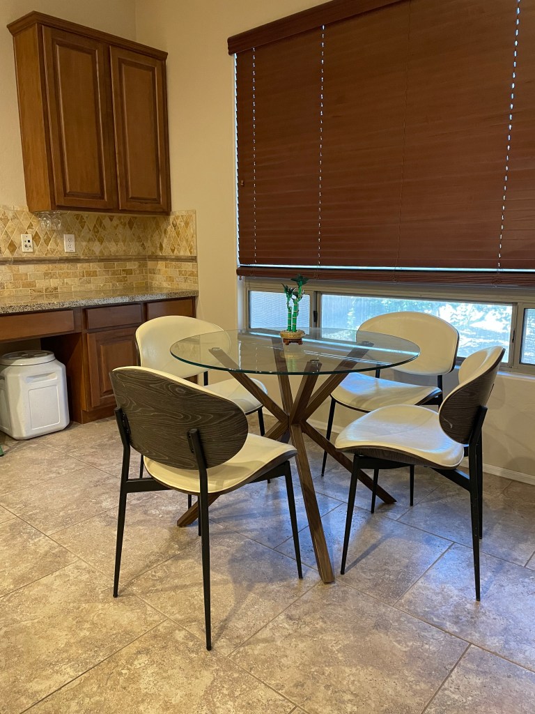 My current home is equipped with a large rectangular dining space that is opened to the living room and within sight line of our kitchen, but my preferred “public space” of the home to write in would be this breakfast nook. I like having the large window behind me. My preference is to write with natural light, but I’ll write in the evening parked under can lights or a ceiling pendant when the task requires it.