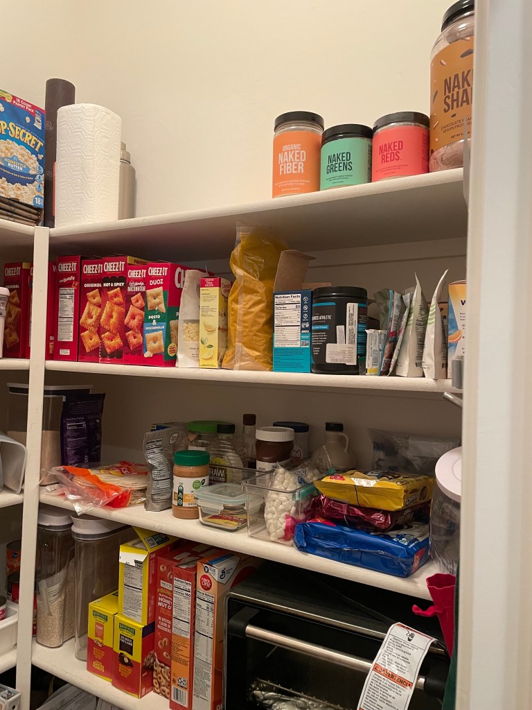 Last thing…every writer needs a snack of some sort. Our new pantry is decently sized. As time permits, I’d like to obtain a quote to make better use of the space, but this is a small peek at what we’ve got going on here. It’s not abnormal for us to have multiple boxes of Cheez-It’s and at least two flavors of Oreos in stock. The pantry is in less of a state of identity crisis compared to last year when we moved in. Out of sight, I have most of our flours lined up together; the salty snacks (olives, pickles, etc.) grouped in a bin; and chips usually end up together as neighbors.