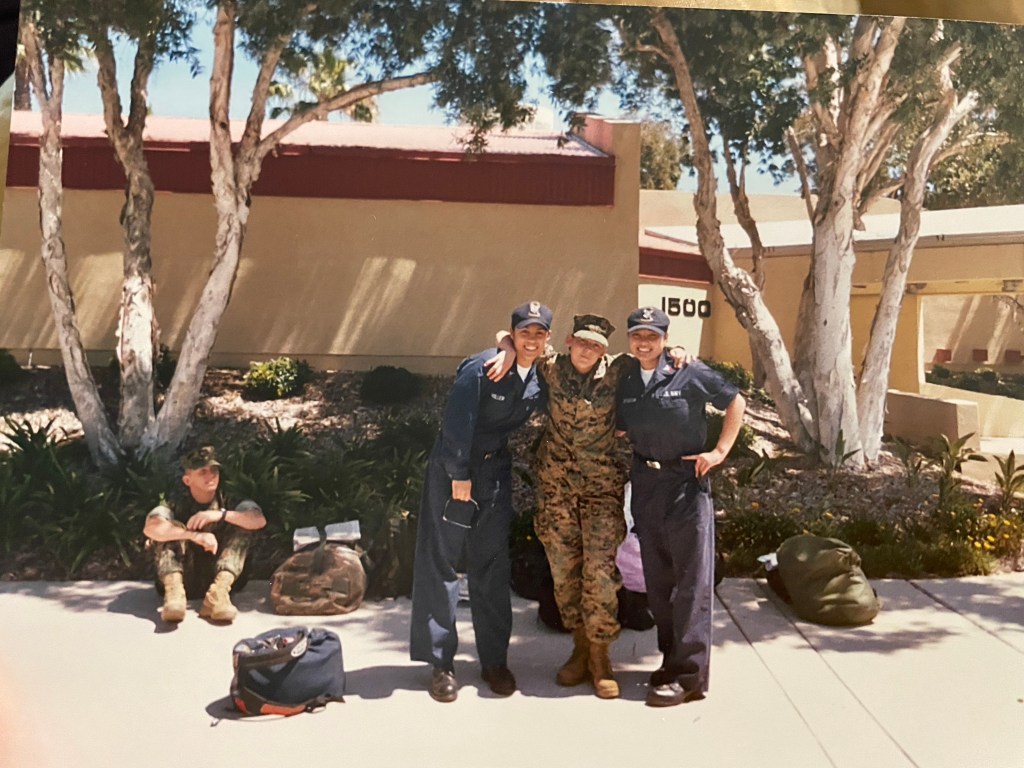 Me in 2003 (left) left photo and on the far right (right photo) at Marine Corps Combat Training (East Coast)Me (center) with two sailors I met while attending Command and Control Personal Computers (C2PC) at Naval Base Coronado in 2004. My coworker, Balsam, is on the far left (seated). We worked together stateside and on my first tour in Iraq, although on different shifts. These are two of my favorite photos from Al Asad Air Base, Iraq (July 2006)