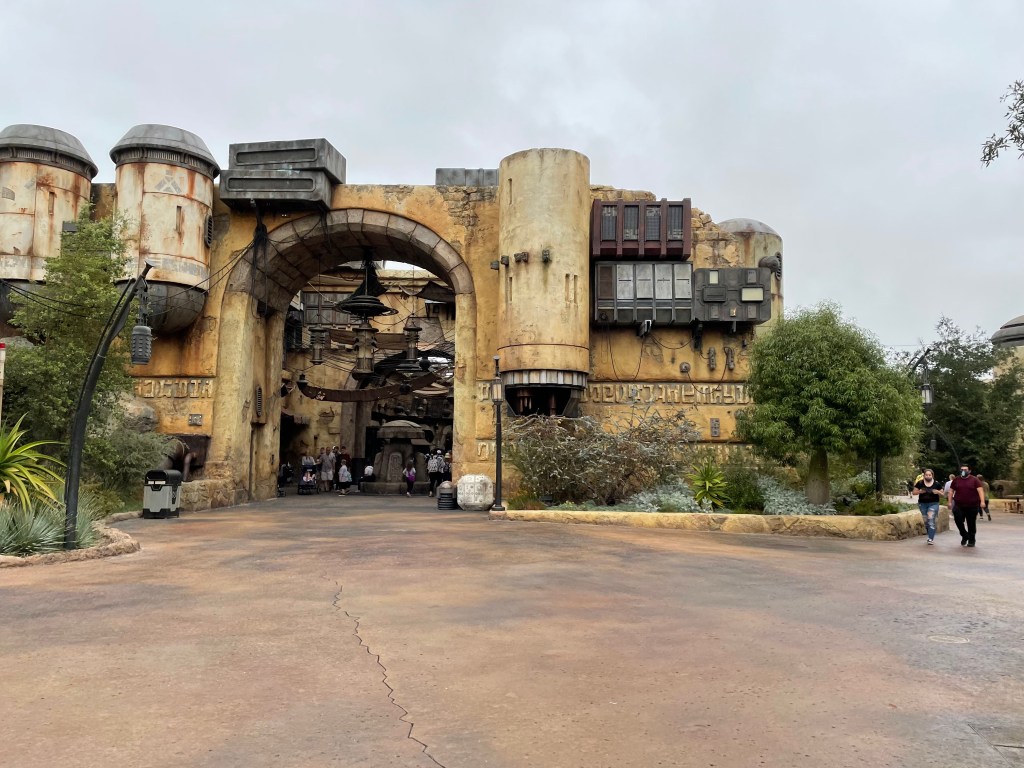 Let’s go shopping!Milk Stand (Whether you get blue or green milk, it’s $7.99 per drink. Delicious, but pricey for a non-alcoholic drink. I loved mine though.)The blue and green milks aren’t super big either, so you must really decide if it’s worth the price. For me, it was.Smuggler’s Run (We were ran through really quickly, so there wasn’t a lot of time to visit this area of the attraction. We did manage to get on the ride two of the three days we were in the park.)Oga’s CantinaRonto RoastersRonto-less Garden Wrap $12.99 (plant-based sausage, spicy kimchi slaw, sweet pickled cucumber, and Plant-based Gochujang spread for the filling)Galaxy’s Edge is an extremely immersive experience. The park has a lot of sounds in this area that really help transform it to a different world, but the most impressive is the jet aircraft sound. It is easy to still look up and expect to see aircraft overhead as you are in this area of the park.Savi’s Workshop (Here is where you can build a custom-ish lightsaber! Your lightsaber costs $219.99, so if you book an appointment, do show up. If you “no show,” Disneyland will still charge you the full price.)Rise of the Resistance was my favorite part of the park trip. We went on the ride two of the three days, and only opted out of our third virtual queue on our last day because it kept getting pushed back and we were pretty tired at that point. If you want to scan some QR codes during your Galaxy’s Edge trip, you can do so using the Play Disney app under the “Star Wars: Datapad” experience. Just our kiddo and I soaking in the glory of Galaxy’s Edge. And if anyone complains you bring too much stuff into the park, as we overheard one grouchy old lady do, ignore them. If Disney is ok with what you bring in and you’re ok with carting it around, then it’s all good.