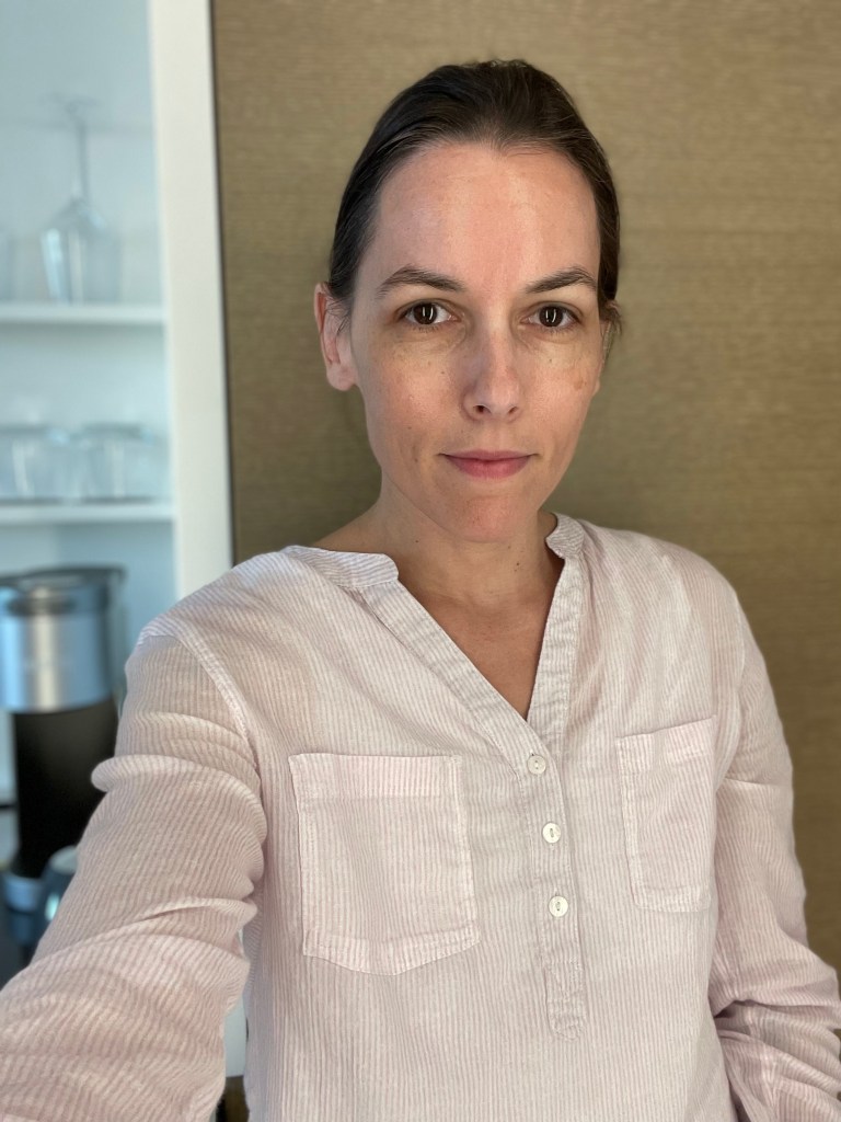 The mirror lighting was perfect for a selfie or two. This is a zero makeup look after a six hour car ride!