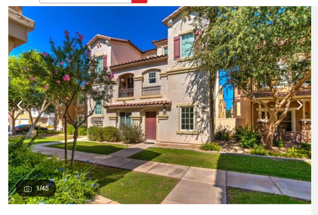 A quick peek at Zillow for a Gilbert, AZ search for a sub $500,000 residence only produces 23 agent listings and 9 other listings as of today. Eight of the latter properties are in the foreclosure process. One condo is in The Gardens neighborhood, shown below.