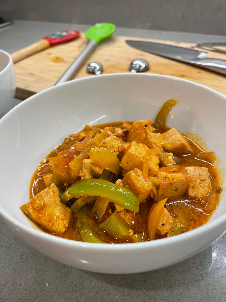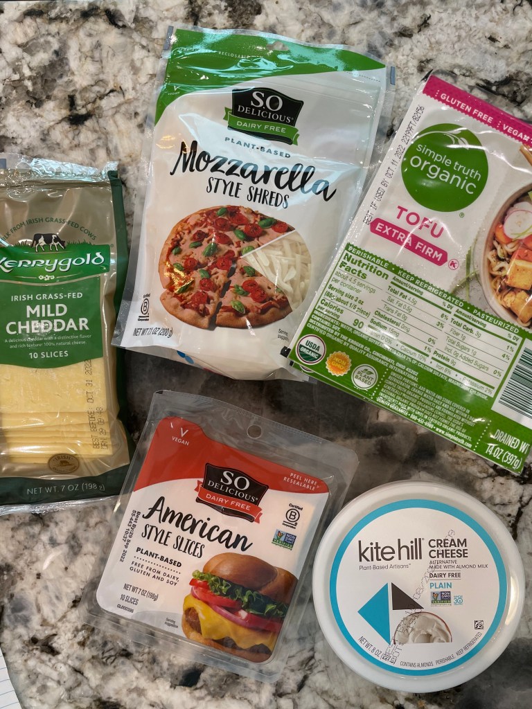 The dairy free components plus tofu for our Dominican recipe entree.